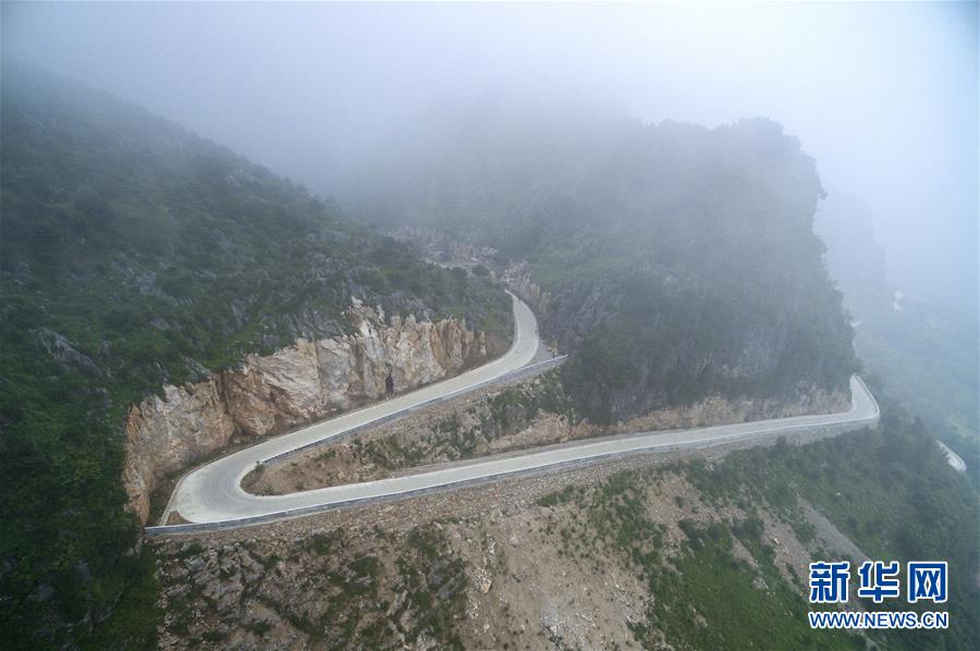 這是在湖北省十堰市鄖西縣湖北口回族鄉坎子山村航拍的進村公路(2017年6月14日攝)。新華社記者 熊琦 攝