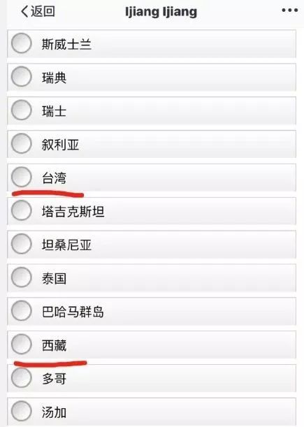 當他們在活動的頁面上填寫信息時,選擇“國家”的列表里,竟赫然出現香港、澳門、臺灣以及西藏的選項。