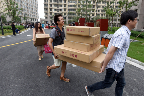 幾個新就業大學畢業生正在搬進公租房 王定昶 攝