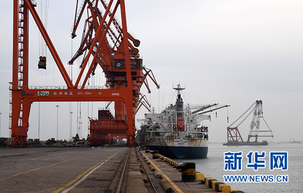 這是作業中的廣西欽州港(1月10日攝)。新華社記者 陸波岸 攝