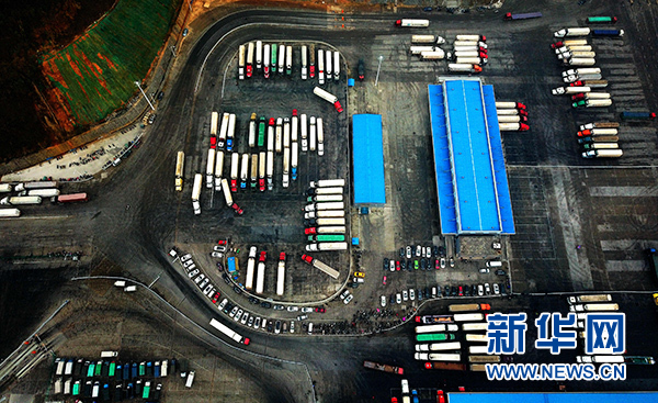 1月16日,來自東盟國家的貨車在憑祥市邊境貿易監管中心等候裝運貨物。新華社記者 張愛林 攝