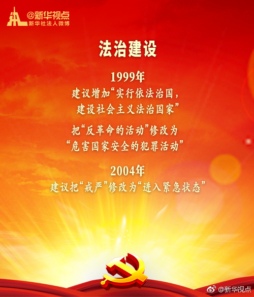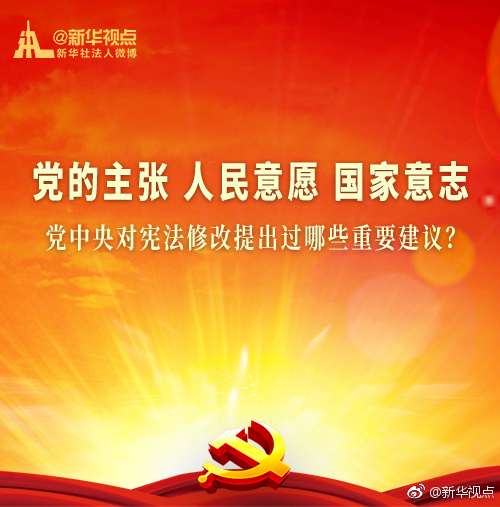 新華網(wǎng)北京1月20日電 黨的十九屆二中全會(huì)1月18日至19日在京召開(kāi),會(huì)議審議通過(guò)了《中共中央關(guān)于修改憲法部分內(nèi)容的建議》。現(xiàn)行“八二憲法”公布實(shí)施后,根據(jù)我國(guó)改革開(kāi)放和社會(huì)主義現(xiàn)代化建設(shè)的實(shí)踐與發(fā)展,分別于1988年、1993年、1999年、2004年進(jìn)行了4次修改。每一次都是由黨中央向全國(guó)人大常委會(huì)提出憲法修改建議,經(jīng)過(guò)法定程序使黨的主張和人民意愿成為國(guó)家意志。(據(jù)新華視點(diǎn)微博)