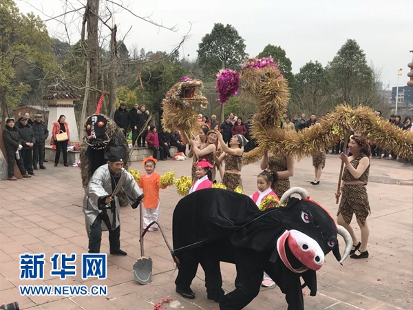 圖為閬中春節(jié)文化主題公園中正在表演節(jié)目的村民 新華網(wǎng) 張世祥 攝