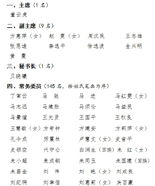 1月27日,市政協舉行全體會議,審議通過選舉辦法,總監票人、監票人名單,選舉產生十三屆市政協主席董云虎,副主席方惠萍、趙雯、周漢民、王志雄、張恩迪、李逸平、徐逸波、金興明、黃震,秘書長貝曉曦,以及145名常務委員。