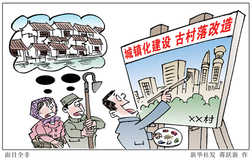 一段時間以來,有的地方完全不顧及農村生產、生活的實際情況,強推農村新社區建設。一些農村社區看似道路、廣場、花壇、商鋪等基礎設施配套齊全,和城里的小區沒有兩樣,但老百姓生產、生活變得頗為不便。