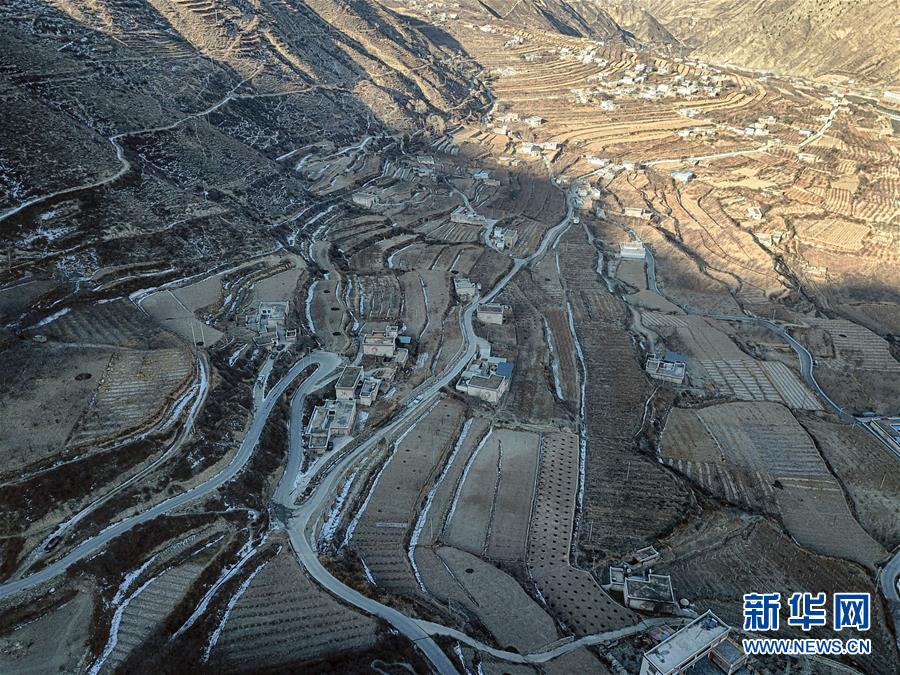 這是1月25日用無人機航拍的四川省阿壩藏族羌族自治州小金縣沃日鎮木欄村村道。新華社記者才揚 攝