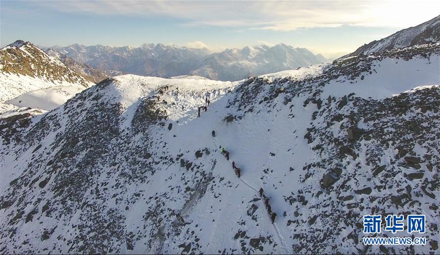 巡診隊沿著幾乎垂直的牧道翻越海拔4000多米的喬拉克達坂(2017年12月15日攝)。新華社記者 江文耀 攝