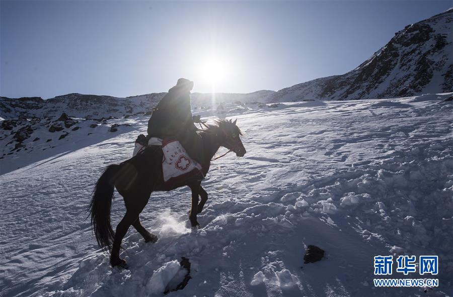 巡診隊醫(yī)生葉力夏提縱馬翻越喬拉克達坂(2017年12月15日攝)。 新華社記者 江文耀 攝