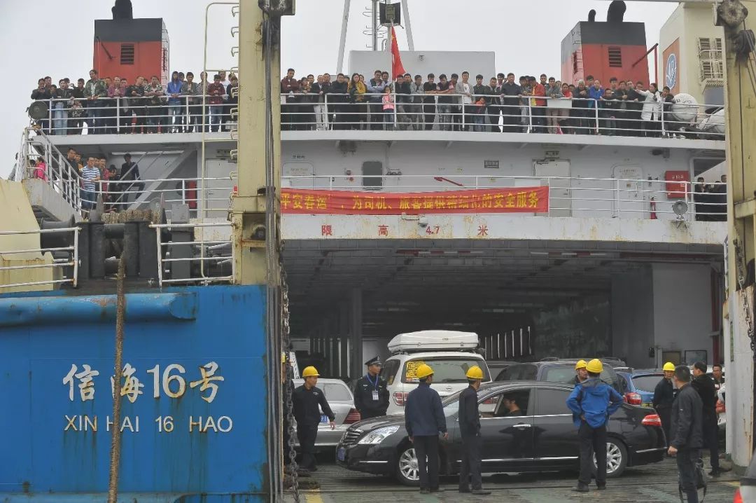 △2月22日,海口秀英港,車輛進入車滾輪(圖/視覺中國)