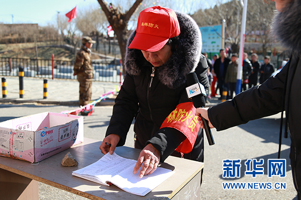 上山游客做登記并將打火機暫存給護林員。新華網 周靖杰 攝