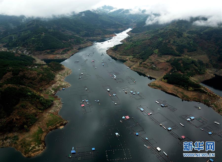 這是無人機拍攝的天生橋庫區紅水河水上“田園”景觀(3月28日攝)。春耕春種時節,在廣西隆林各族自治縣天生橋庫區,當地農民發展的水上養魚場景與紅水河兩岸景色交相融合,構成一幅幅美麗的春日畫卷。新華社記者張愛林攝