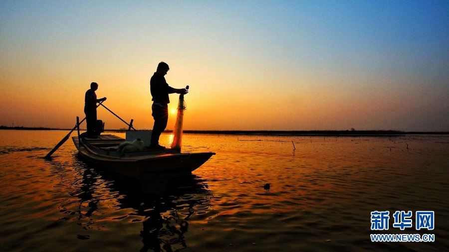 淀上漁家(3月25日攝)。 新華網毛鶴然攝