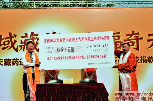 ▲2009年10月,馮翊向某學(xué)校捐贈(zèng)50萬元。受訪者供圖