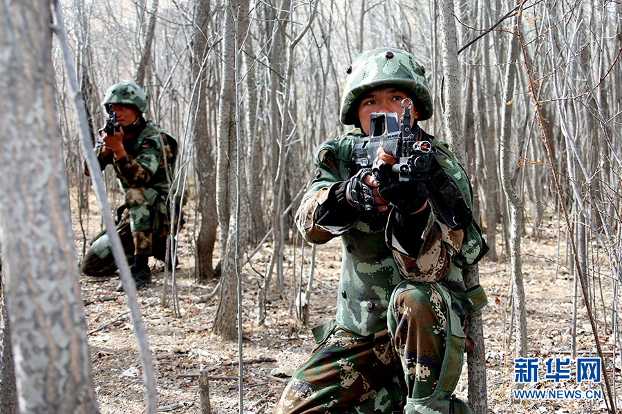 這是特戰隊員正在進行紅藍對抗科目訓練。新華網發 余文彬 攝