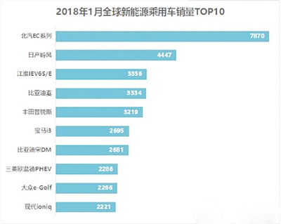 2018年1月全球新能源乘用車銷量TOP10