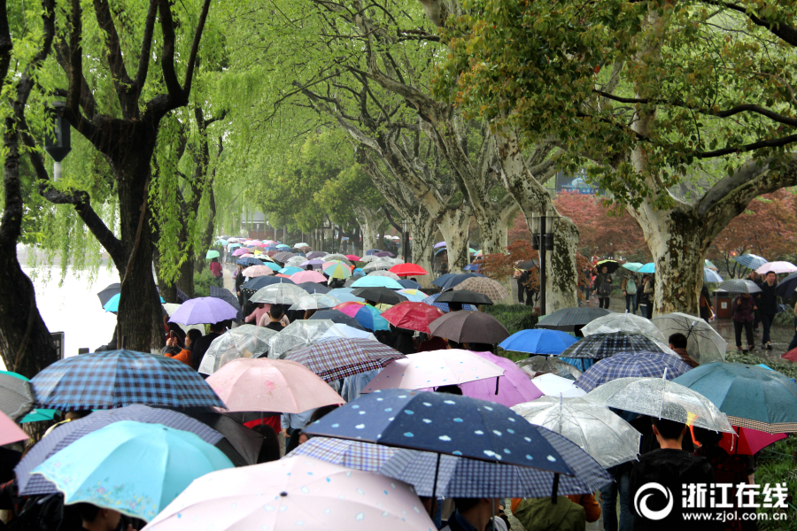 杭州:清明時節(jié)雨紛紛 西湖游客雨中游