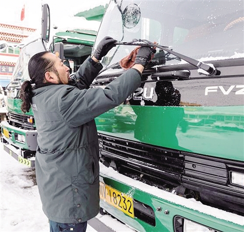 其美多吉在出班前檢查車輛。經(jīng)濟(jì)日?qǐng)?bào)-中國經(jīng)濟(jì)網(wǎng)記者 張 雪攝