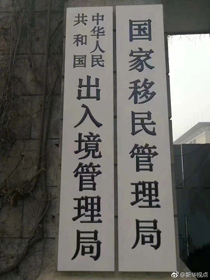 4月2日,新組建的國家移民管理局正式掛牌。國家移民管理局將公安部的出入境管理、邊防檢查職責整合,建立健全簽證管理協(xié)調機制,加掛中華人民共和國出入境管理局牌子,由公安部管理。(新華社“新華視點”微博 記者 劉奕湛)