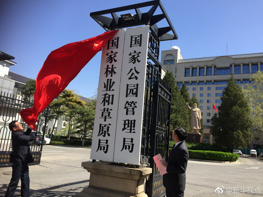 國家林業(yè)和草原局、國家公園管理局4月10日正式揭牌,由自然資源部管理,這對統(tǒng)籌山水林田湖草系統(tǒng)治理具有重要意義。(新華社“新華視點”微博 記者 侯雪靜 胡璐)