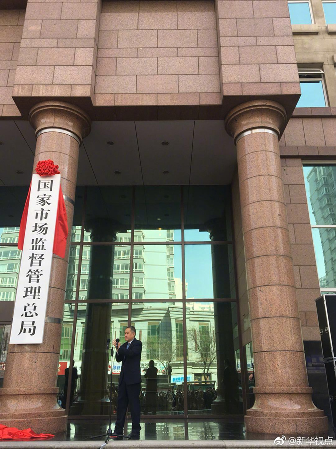 新組建的國家市場監(jiān)督管理總局4月10日正式掛牌。張茅任局長、畢井泉任黨組書記。國家藥品監(jiān)督管理局同日揭牌,由國家市場監(jiān)督管理總局管理。(新華社“新華視點”微博)