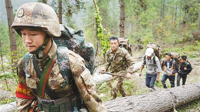 察隅邊防官兵與當地居民組成巡邏隊進山巡邏。 記者 鄧建勝攝