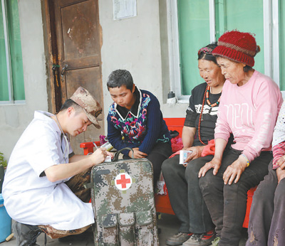 “這兩年,我的關節炎經常復發,全靠部隊的醫生送藥。雖然我叫不出他們的名字,但哨所的每個人都是好人,像自己的孩子那么熟悉。”4月10日下午,當邊防連的醫生陽運川來到村里義務巡診時,次旺卓瑪用藏語對記者說。記者 鄧建勝 瓊達卓嘎