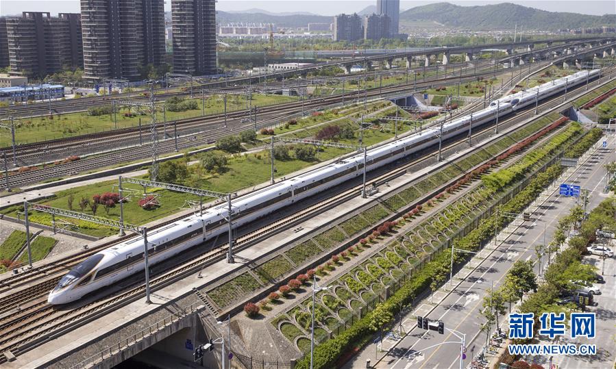 4月9日,一列“復興號”動車組列車行駛在京滬高鐵南京市境內。國家統計局4月17日發布數據,初步核算,一季度國內生產總值198783億元,按可比價格計算,同比增長6.8%。 新華社發(蘇陽 攝)