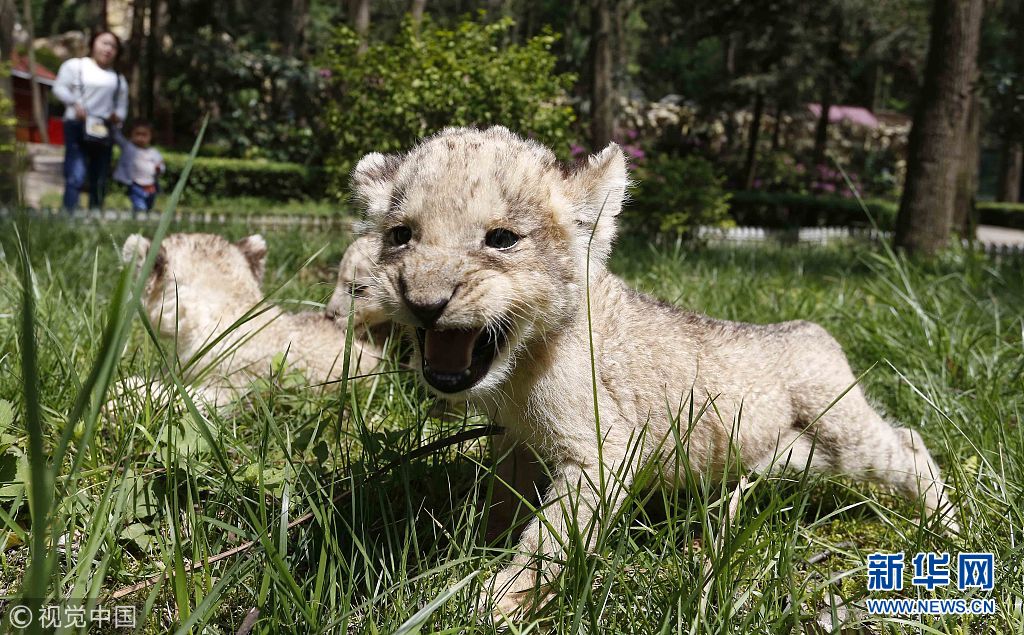 4月17日,在貴州森林野生動物園珍稀動物區,記者見到了5只剛出生的小獅子。(圖片來源:視覺中國)