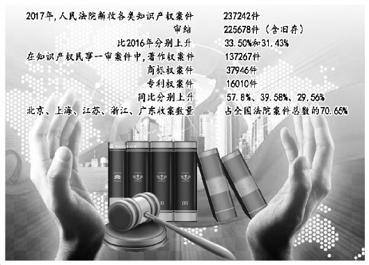 針對(duì)這些情況,人民法院在充分發(fā)揮司法保護(hù)主導(dǎo)作用,加大保護(hù)力度的同時(shí),加強(qiáng)知識(shí)產(chǎn)權(quán)審判領(lǐng)域改革創(chuàng)新,除設(shè)立3家知識(shí)產(chǎn)權(quán)法院外,還積極探索設(shè)立跨區(qū)域管轄的知識(shí)產(chǎn)權(quán)專門審判機(jī)構(gòu)。