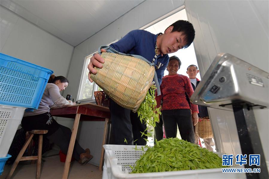 在江西省樂平市高家鎮(zhèn)朱家村高家白茶基地,工人在茶園里收購春茶,這里是江西“一村一名大學(xué)生”工程的教學(xué)實(shí)踐基地之一(3月28日攝)。新華社記者彭昭之?dāng)z