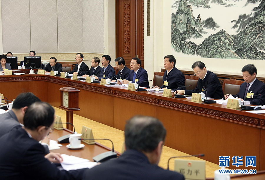 4月25日,十三屆全國人大常委會第二次會議舉行分組會議,審議人民陪審員法草案、英雄烈士保護法草案等。栗戰書委員長參加審議。 新華社記者劉衛兵 攝