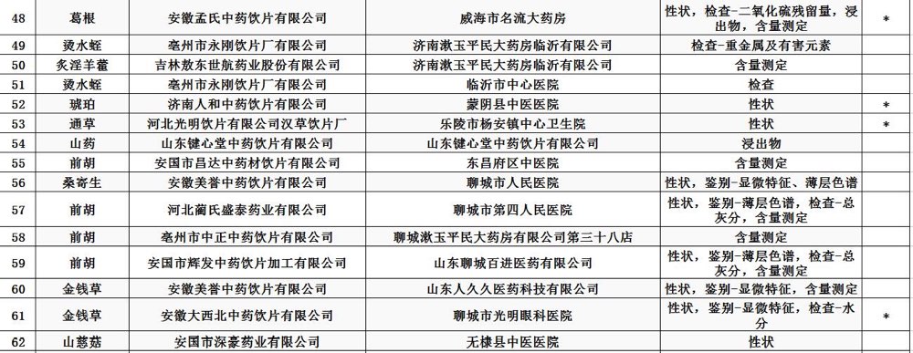 經(jīng)濱州市食品藥品檢驗檢測中心等14家藥品檢驗機構(gòu)檢驗,標示為河北凱諾制藥有限公司等2家企業(yè)生產(chǎn)的2批次藥品,標示為金芍堂中藥飲片有限公司等47家企業(yè)生產(chǎn)的70批次中藥飲片不合格。