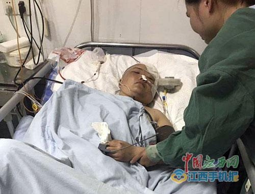 5月7日下午,江南都市報全媒體記者與劉慧芳的丈夫楊育華取得了聯系,他告訴說,他趕到現場時,妻子已經不省人事。妻子被送到都昌縣人民醫院,搶救后又轉到九江市的醫院,經檢測發現,妻子身體多處骨折,顱腦重型損傷左側腦部膜外出血,傷勢十分嚴重,當晚就做了手術。醫生說,如果晚來一步,妻子可能就有生命危險。