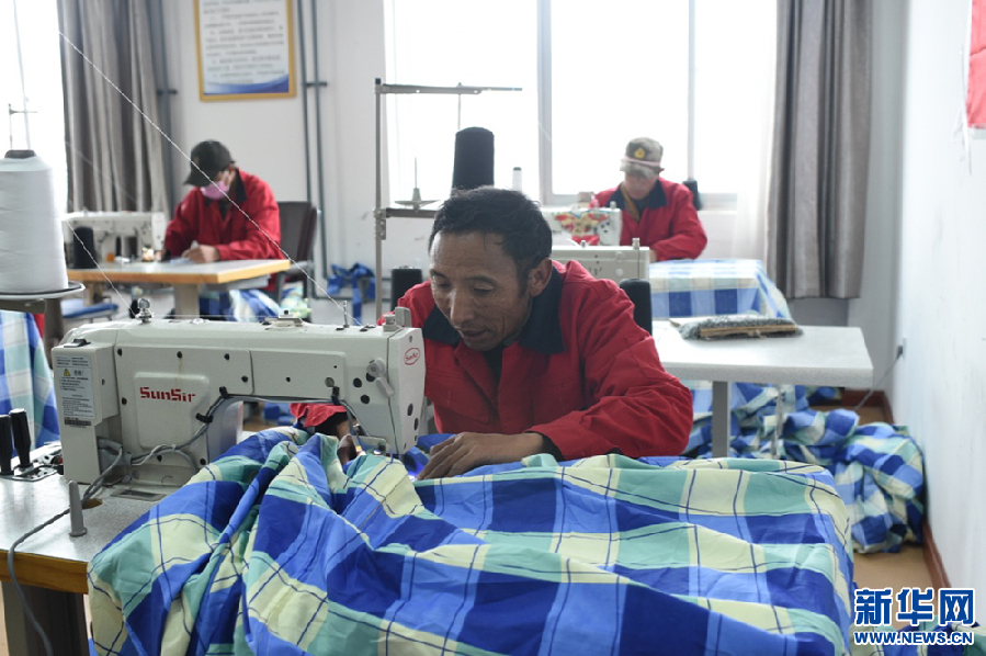 走出五保戶集中供養(yǎng)服務(wù)中心,對面就是錯那縣殘疾人就業(yè)中心。成立于2016年的殘疾人就業(yè)中心目前幫助16名建檔立卡貧困戶殘疾人解決了就業(yè)問題。每位殘疾人通過5個(gè)月的免費(fèi)培訓(xùn)就可以正式上崗,為一些學(xué)校制作校服,為各部門制作彩旗、藏裝、窗簾、救災(zāi)帳篷、旅游特色禮品等。每人每月能拿到2000-3500元不等的工資。