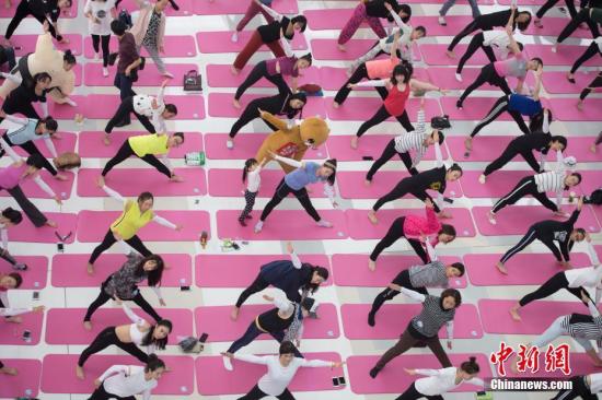 資料圖:瑜伽愛(ài)好者在做瑜伽。韋亮 攝