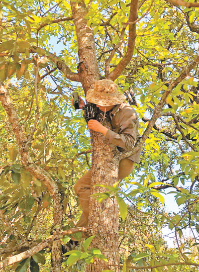 中國科學院昆明動物研究所研究人員在安放紅外相機,進行鳥類監測。中國科學院昆明動物研究所鳥類學組供圖
