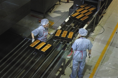 門楣上,暗紅色的招牌上噴著鮮黃的大字——“百年義利”。這個隸屬于北京第一輕工食品集團(簡稱“一輕”)的百年老店是一家國有企業,自1951年在北京建廠至今已生存67年。