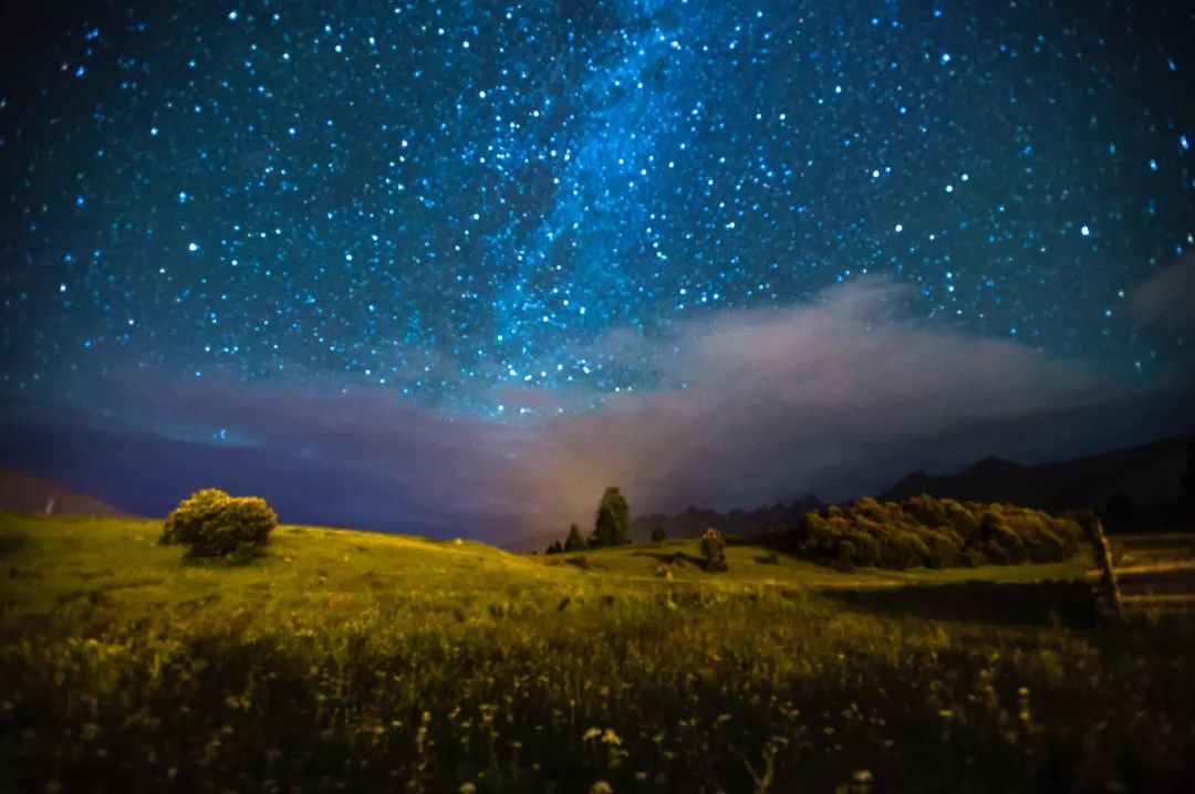 西藏魯朗高山牧場夜晚的星空。 新華網 達娃 攝