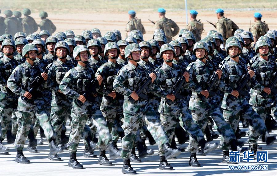 2014年8月24日,中國人民解放軍參演部隊在“和平使命—2014”上海合作組織成員國武裝力量聯(lián)合反恐軍事演習開始儀式上舉行分列式。17歲,恰如風華正茂的青年。自世紀之初誕生于上海黃浦江畔,上海合作組織走過一段不平凡的發(fā)展歷程,和平穩(wěn)定能力不斷增強、發(fā)展動能不斷涌現(xiàn)、影響力不斷提升,邁入蓬勃發(fā)展新階段。17載風雨同舟,上合組織走出了一條相互尊重、公平正義、合作共贏的新型國際關(guān)系之路。初夏6月,上合組織成員國元首理事會第十八次會議將在中國海濱城市青島舉行。弘揚“上海精神”、總結(jié)成功經(jīng)驗、共同規(guī)劃未來、推動擴員后的上合組織加強新老成員間的合作,青島峰會必將成為上合組織發(fā)展史上一座新的里程碑,續(xù)寫這一新型區(qū)域組織的新篇章。新華社記者 張領(lǐng) 攝