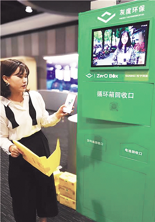 江蘇南京蘇寧物流推出的共享快遞盒提高了物流運輸效率,并可循環使用。