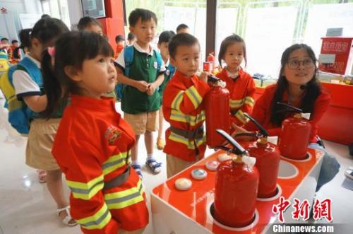 資料圖:兒童節孩子們穿上迷你消防服,體驗模擬滅火?!№n章云 攝