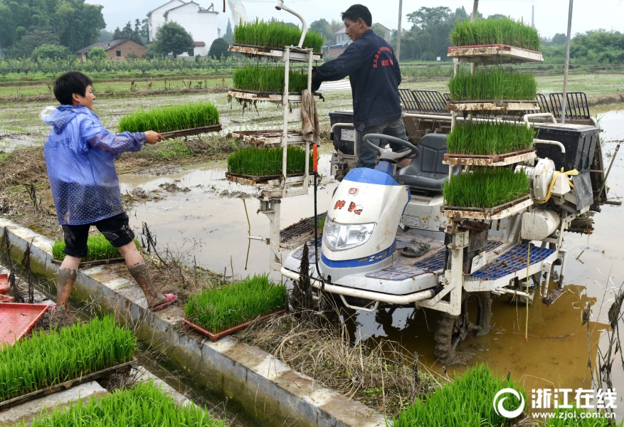 武義縣王宅鎮陶宅村種糧大戶方曉輝忙著插種單季稻。