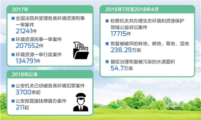 6月5日,最高法、最高檢、公安部公布了近年來打擊污染環境違法犯罪相關情況。2017年,全國法院共受理各類環境資源刑事一審案件21241件,審結20602件;2015年7月至2018年4月,全國檢察機關共辦理生態環境和資源保護領域公益訴訟案件17715件;今年以來,全國公安機關已偵破各類環境犯罪案件3700余起,抓獲犯罪嫌疑人5730余名,公安部直接掛牌督辦案件211起。