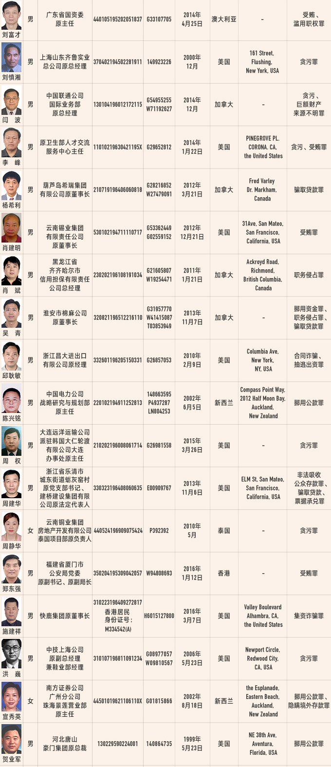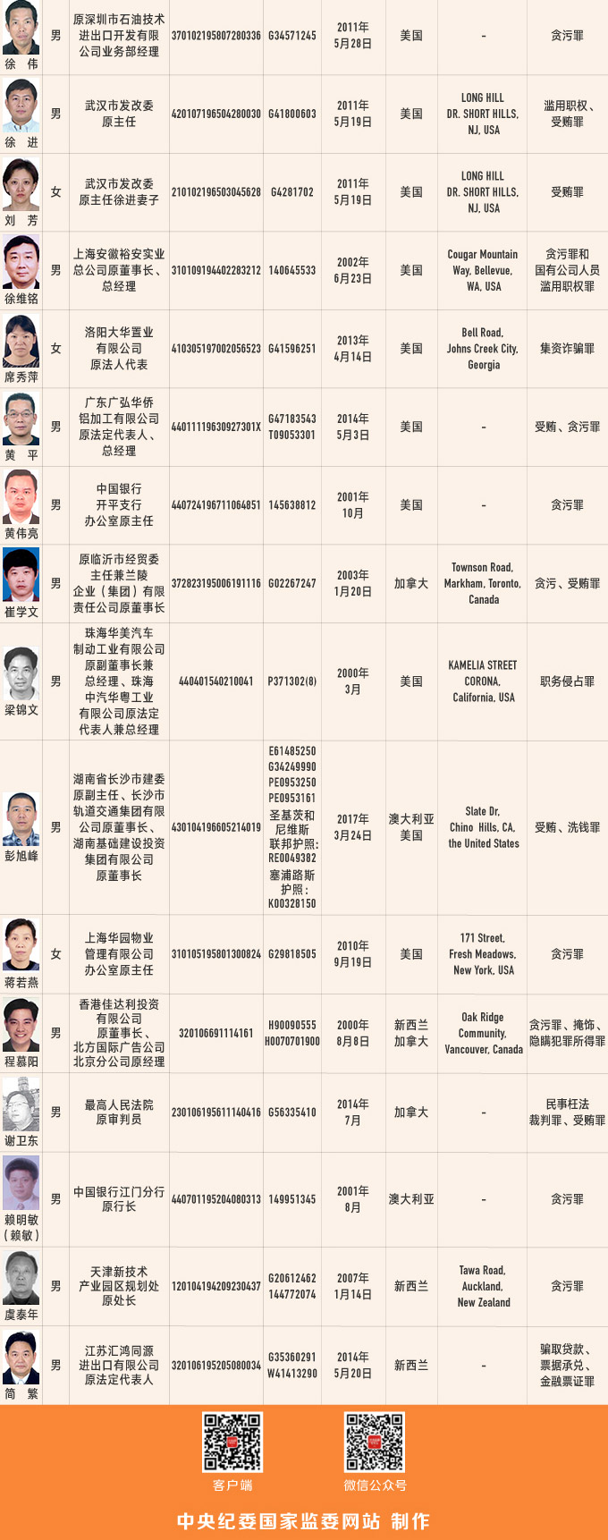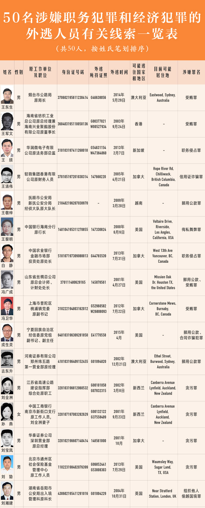 圖解:50名涉嫌職務犯罪和經濟犯罪的外逃人員有關線索一覽表