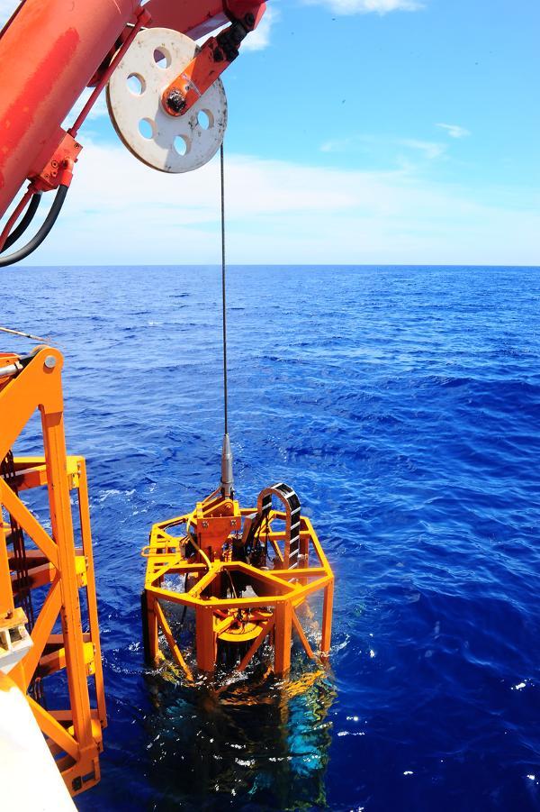 “海斗”號自主遙控水下機器人在西太平洋進行下潛實驗(2016年7月18日攝)。新華社發(沈陽自動化所提供)