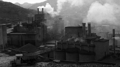 1980年代的浙江省湖州市安吉縣天荒坪鎮余村炸山采礦、煙囪林立(新華社發),如今這里的綠水青山成了金山銀山(新華社記者翁忻旸 攝)。