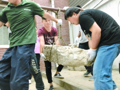昨天下午,清河街道和圓明園管理處在清河街道舉行了圓明園流散文物回歸儀式,向杜澤寧和楊亞榮頒發了證書和獎勵,并且安排專人將4件文物運送回圓明園。圓明園文物考古科科長陳輝告訴記者,待螭頭到達圓明園后,將由專家對它們進行全身“體檢”,制定修復方案。“這些螭頭有一些小裂縫,如果不好好保護,時間久了容易出問題。”