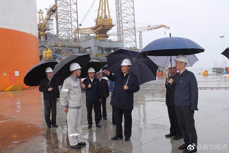 習近平冒雨考察海洋工程設備制造基地