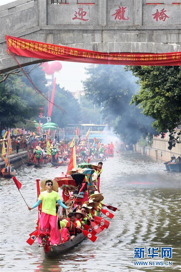 6月14日,在廣州天河區(qū)一處河道,一艘龍舟通過(guò)“迎龍橋”。當(dāng)日,廣州市天河區(qū)舉行一場(chǎng)熱鬧歡快的龍舟活動(dòng),來(lái)自多個(gè)村莊“走親戚”的龍舟隊(duì)參加。按廣州的傳統(tǒng)習(xí)俗,每年農(nóng)歷五月初一至初五,各村的龍舟隊(duì)要到周?chē)迓洹白哂H戚”。走親戚的龍舟隊(duì)到來(lái)時(shí),受訪村子要準(zhǔn)備好龍舟飯招待來(lái)客。活動(dòng)當(dāng)天,鳴炮敲鑼,一派喜慶氣氛。新華社記者 張加揚(yáng) 攝