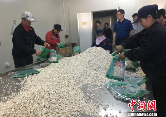 清水縣的華盛農業綜合開發有限公司依托當地豐富的天然野生沙棘林、人工核桃林、甜玉米種植等優勢資源,擴大種植基地建設,帶動農戶增收。圖為加工產品展示區。 張婧 攝
